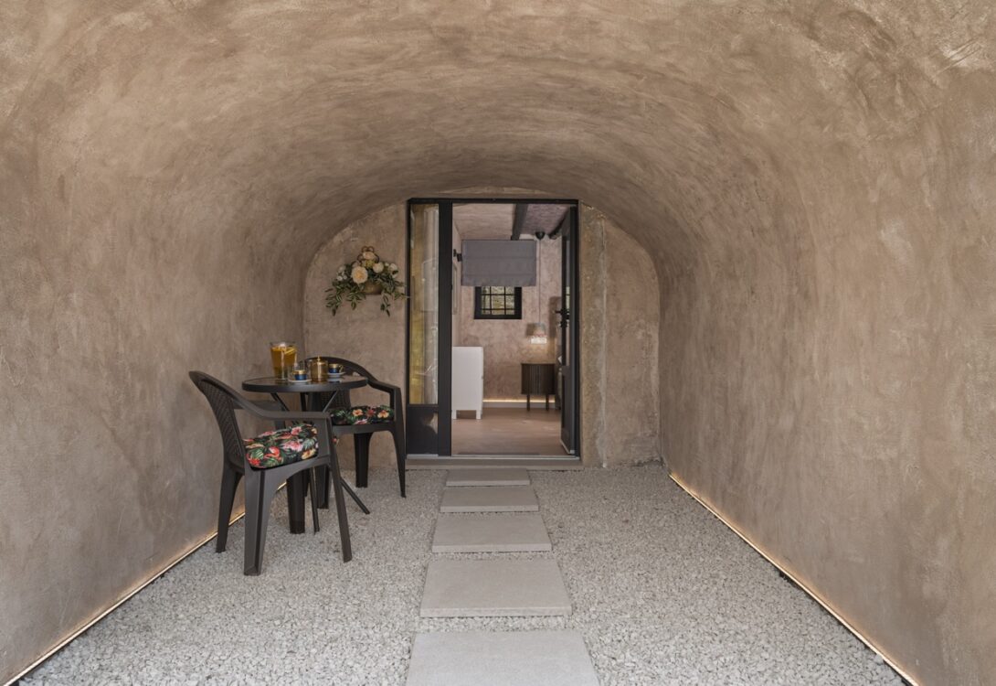 25 square meters, featuring a king-size bed (180 x 200 cm), a separate entrance through a traditional stone tunnel, with modern amenities including air conditioning and satellite TV.